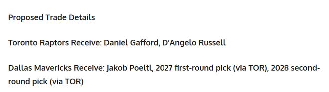 ✅独行侠得到:雅各布・波尔特尔、2027年猛龙首轮签、2028年猛龙次轮签